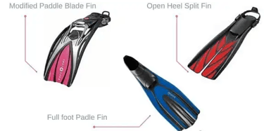 Description: These fins have an open back, allowing the diver to wear booties. This design provides a more adjustable fit and is often preferred for colder water or rocky environments.
